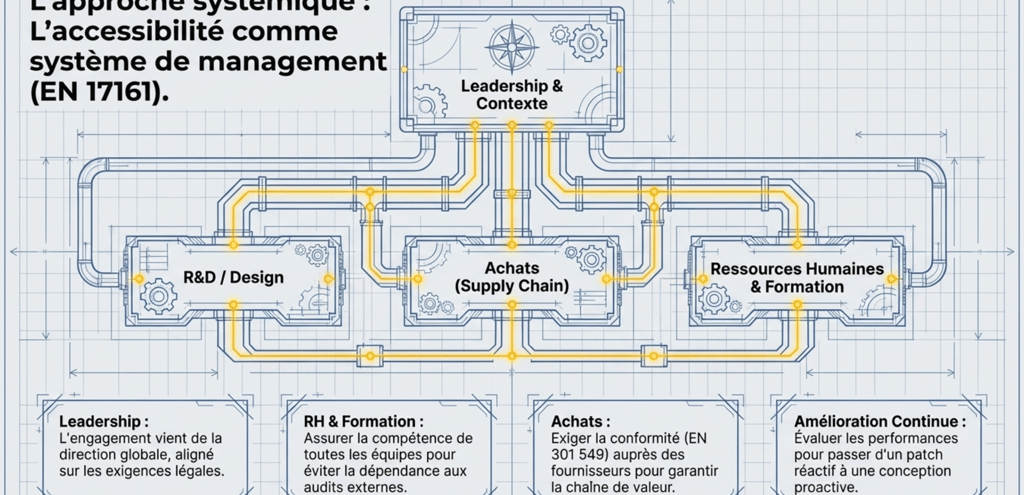 Les processus continus : L'accessibilité n'est plus un simple audit (ou une correction de bugs), mais un processus d'amélioration continue intégré aux systèmes de management (comme l'ISO 9001).
